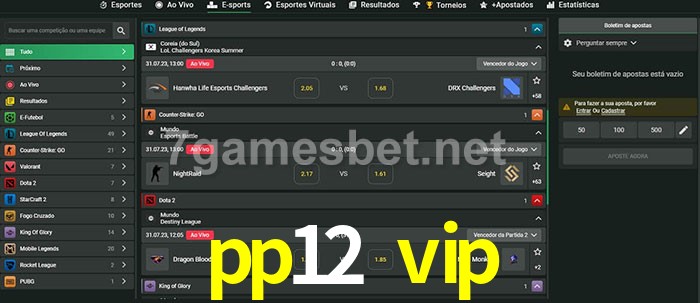 O pp12 vip oferece uma grande seleção de opções de apostas em e-sports com probabilidades competitivas